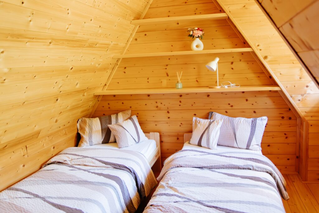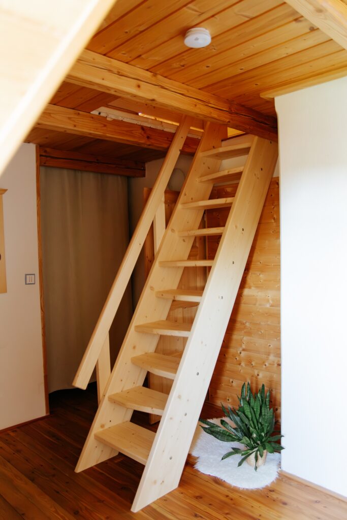 • Poslední pokoj je přístupný z chodby v patře také po chalupářských schodech, kde jsou 2 postele